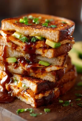 One of the best things about this recipe is its incredible versatility. Don’t be afraid to experiment and make it uniquely your own! For the cheese, while a blend of sharp cheddar and creamy Monterey Jack is fantastic, try adding a slice of smoked gouda for an extra layer of smoky depth, or some fiery pepper jack if you like a little kick. Different BBQ sauces can completely transform the flavor profile – a spicy chipotle BBQ sauce for heat lovers, a tangy Carolina mustard-based sauce for a different kind of zest, or a sweet and sticky Kansas City style for extra indulgence. You can also mix in some caramelized onions for a burst of rich sweetness, a few slices of pickled jalapeños for a spicy tang, or even some crispy bacon bits for an extra layer of savory crunch. Imagine a “Bbq Chicken Grilled Cheese” with a hint of crispy fried onions and a dollop of creamy ranch dressing inside – pure genius! You could even use different types of bread; a sturdy sourdough or a rustic Italian loaf would provide a wonderful chewiness and structure, adding another layer of complexity. Don’t limit yourself – this recipe is a canvas for your culinary creativity, inviting you to explore endless delicious possibilities.